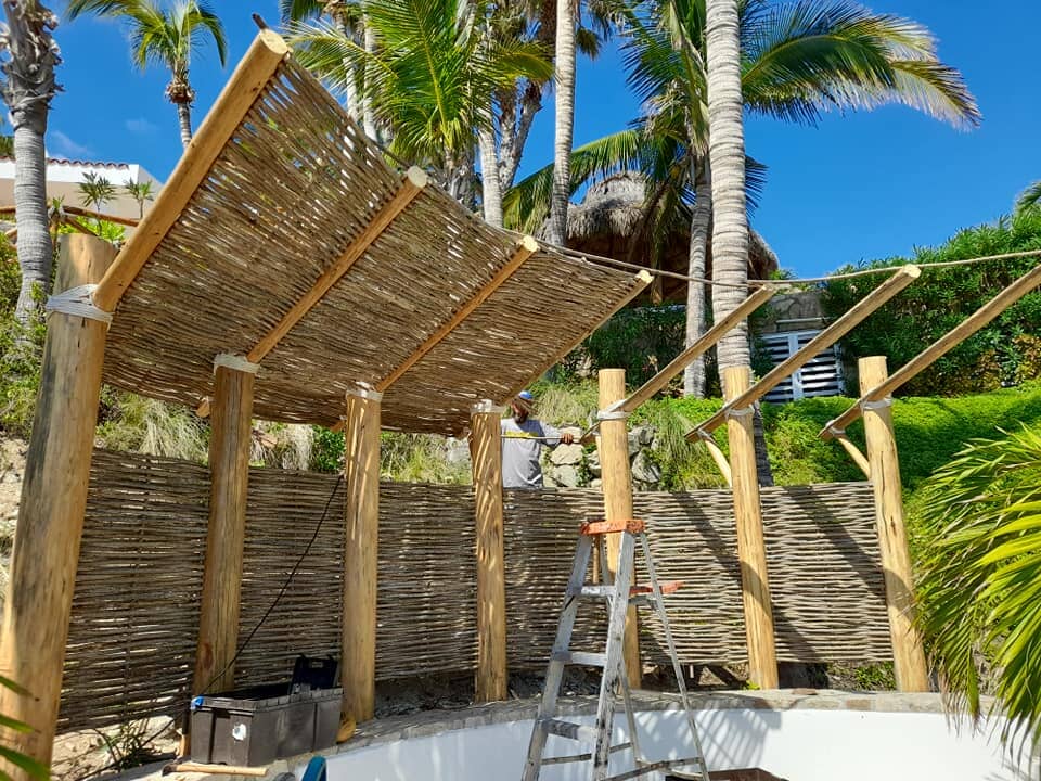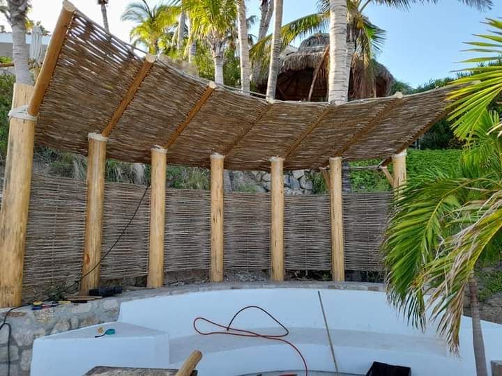 construcción de palapas, pérgolas. Manejamos diseños novedosos con tejidos y amarres de distintos tipos. Nuestras palapas son resistentes a huracanes.